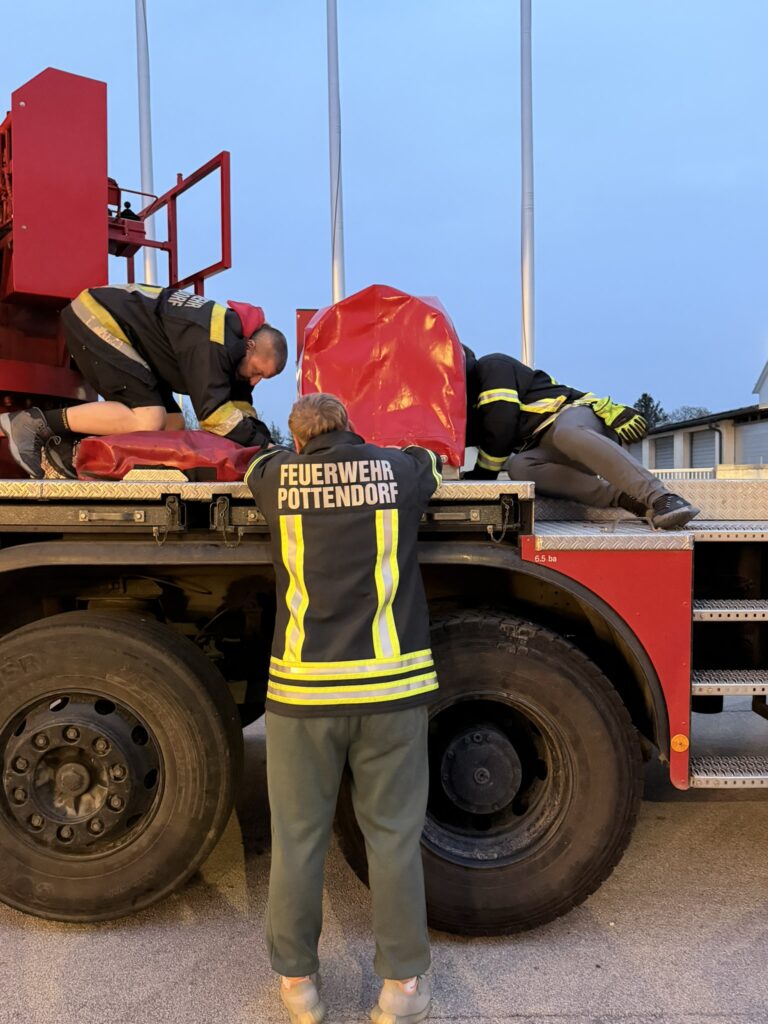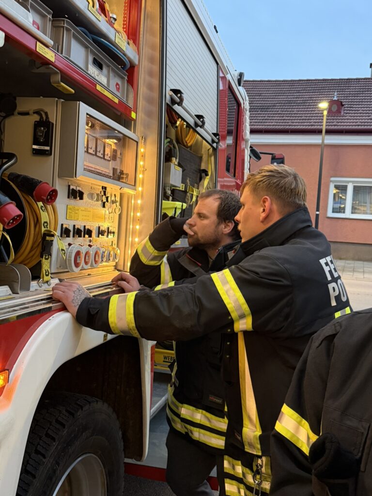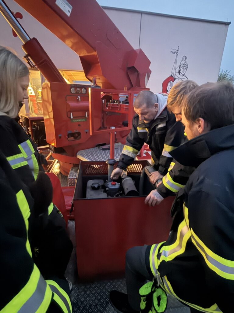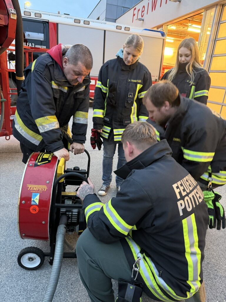 Dabei wurde die richtige Bedienung verschiedener Geräte, wie z. B. Kettensäge, Stromaggregat und Druckbelüfter bei all unseren Fahrzeugen, aufgefrischt, um im Einsatz bestens vorbereitet zu sein.
