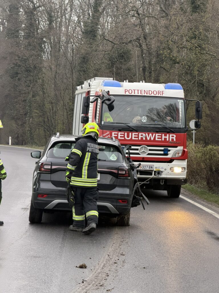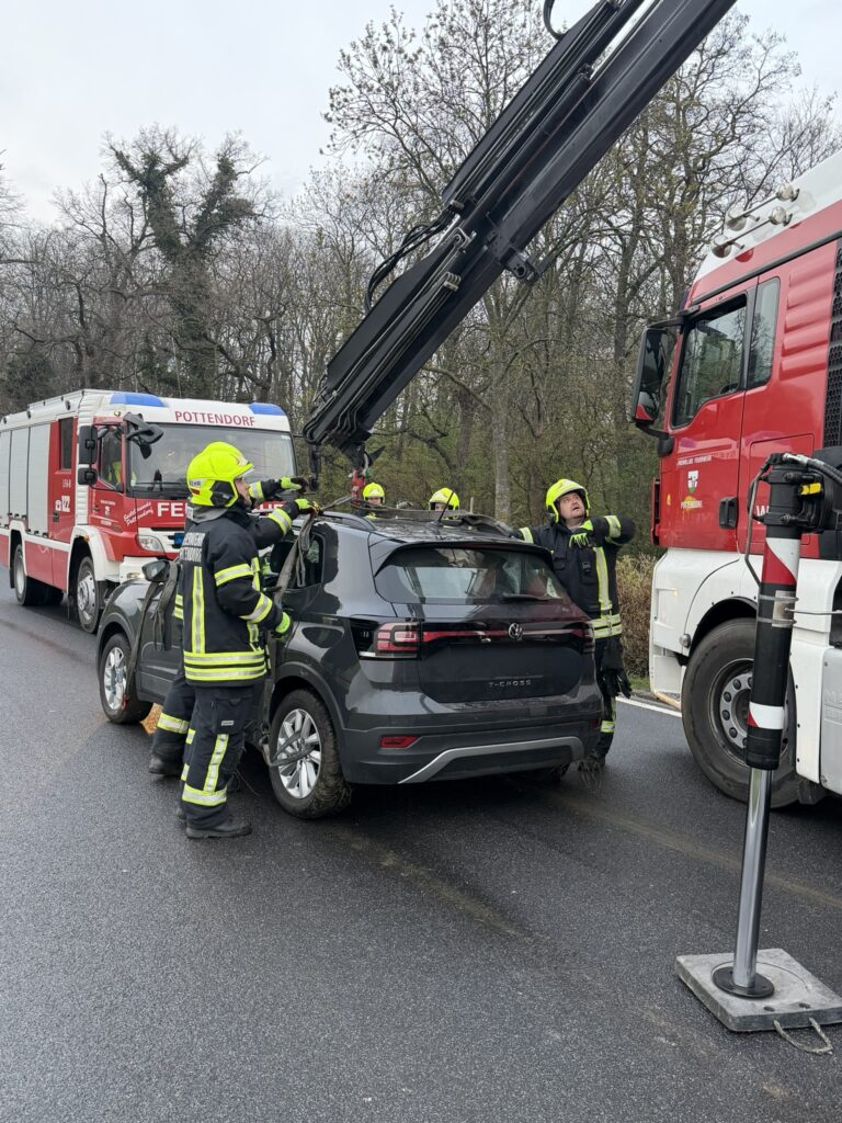 Aufgrund eines technischen Fehlers wurde die Feuerwehr Pottendorf zu spät alarmiert, sodass beim Eintreffen an der Unfallstelle die Feuerwehren Landegg, Wampersdorf, Ebreichsdorf und Oberwaltersdorf bereits vor Ort waren. Eine eingeklemmte Person konnte glücklicherweise schon befreit werden.